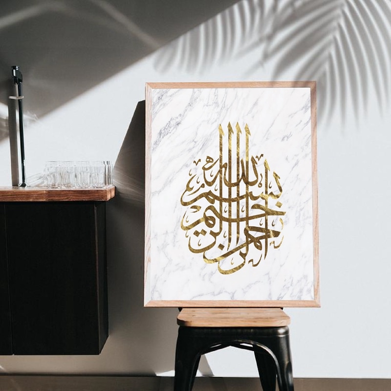 Be the first to review “Bismillah Arabic Calligraphy Marble Quote Canvas Art Poster Prints Nursery Decor Islamic Wall Art Painting Home Decoration”