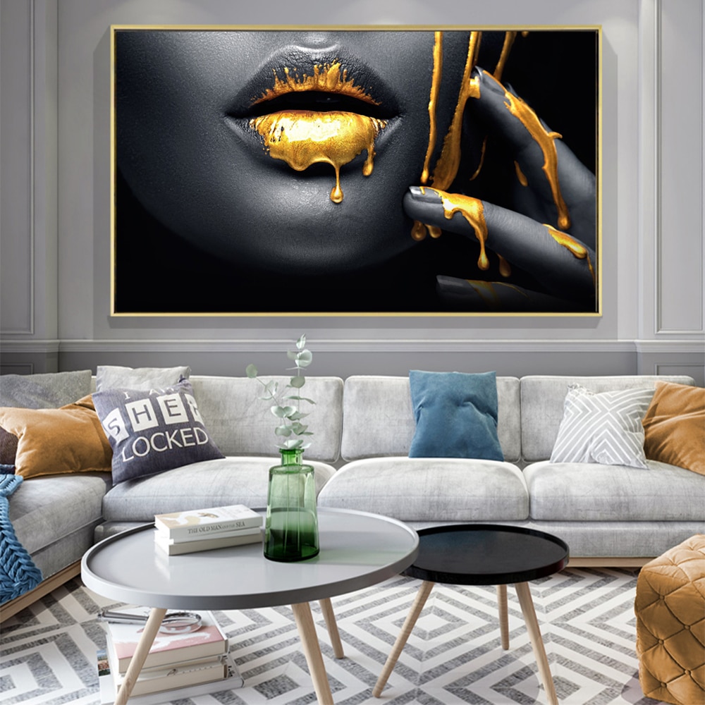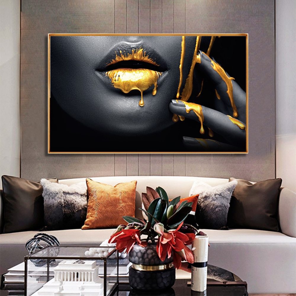 Black Africa Woman Golden Lip Portrait Canvas Painting Posters and Prints Wall Art Picture for Living Room