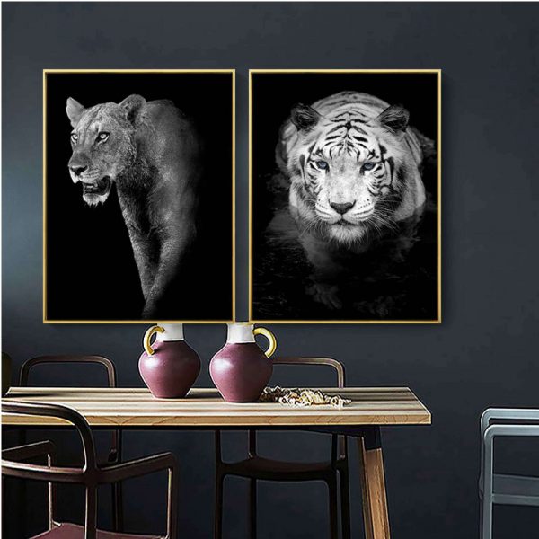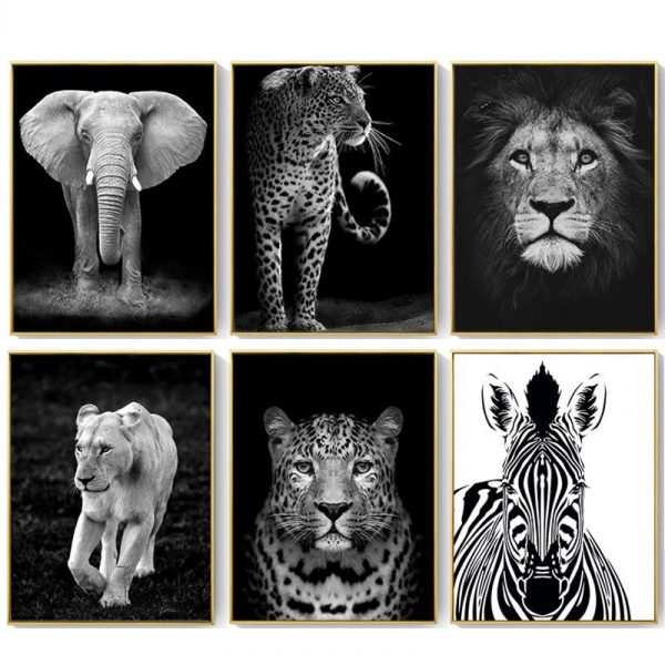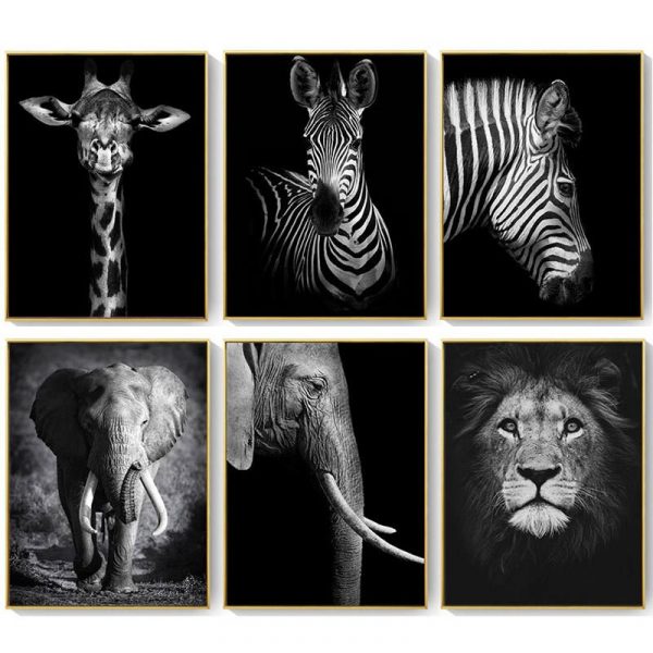Be the first to review “Black and White Canvas Painting Animal Wall Art Lion Elephant Deer Zebra Poster Wall Picture Decorative Painting Creative”