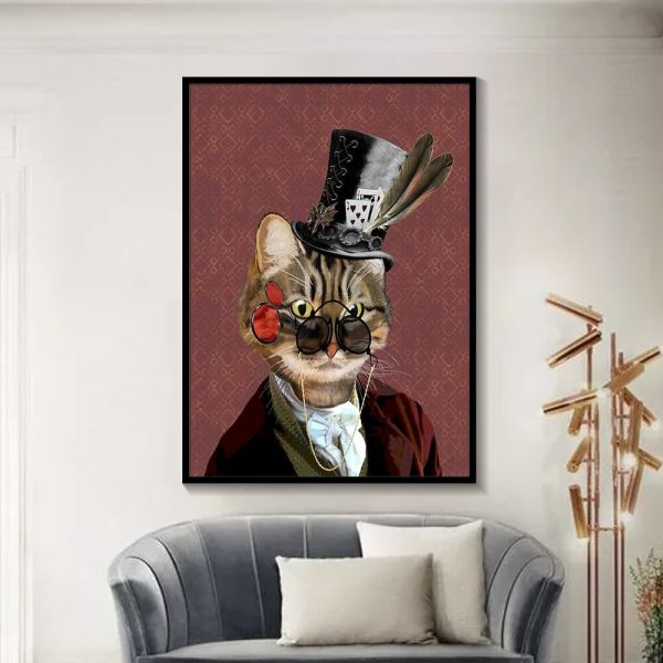 Black and White Dog Cat Wolf Fox Canvas Painting Posters Prints Wall Art Picture Wearing a Hat Living Room Home Decor Cuadros