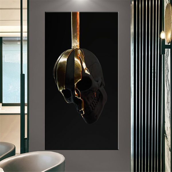 1 review for Black Gold Modern Abstract Skull Flower Modern Canvas Painting Posters Prints Wall Art Picture for Living Room Decor Cuadros