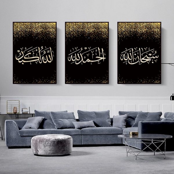 Black Gold Paintings Islamic Wall Art Posters Arabic Calligraphy Canvas Printed Pictures Muslim Living Room Fashion Art Decor