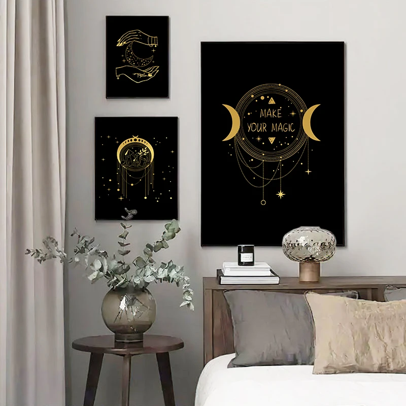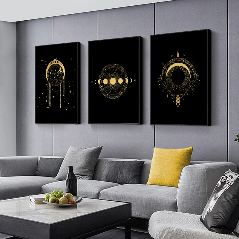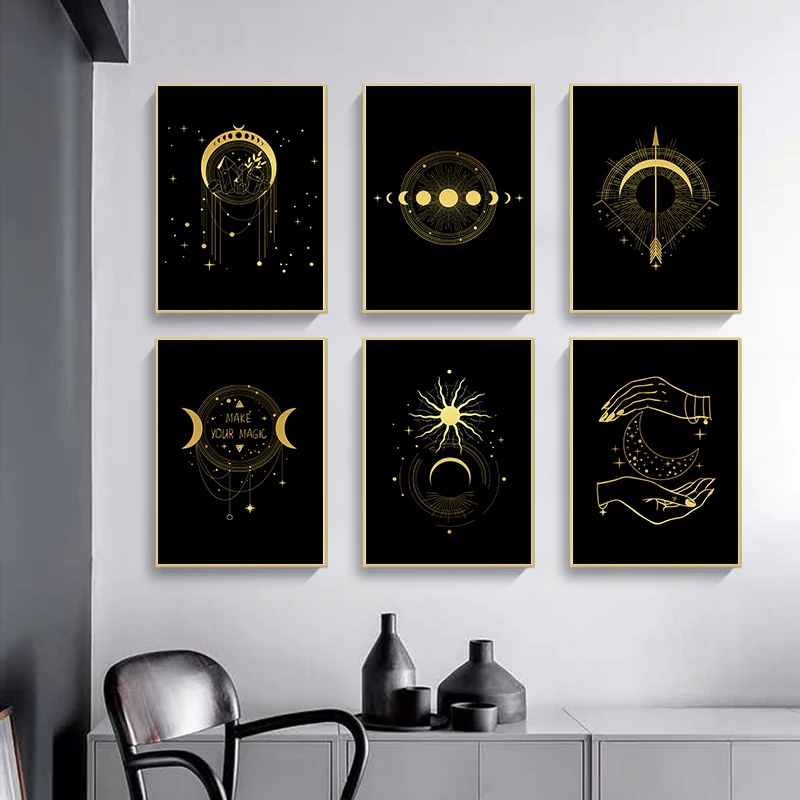 Be the first to review “Black Gold Sun Moon Star Canvas Poster Print Modern Home Decor Abstract Wall Art Painting Nordic Living Room Decoration Picture”