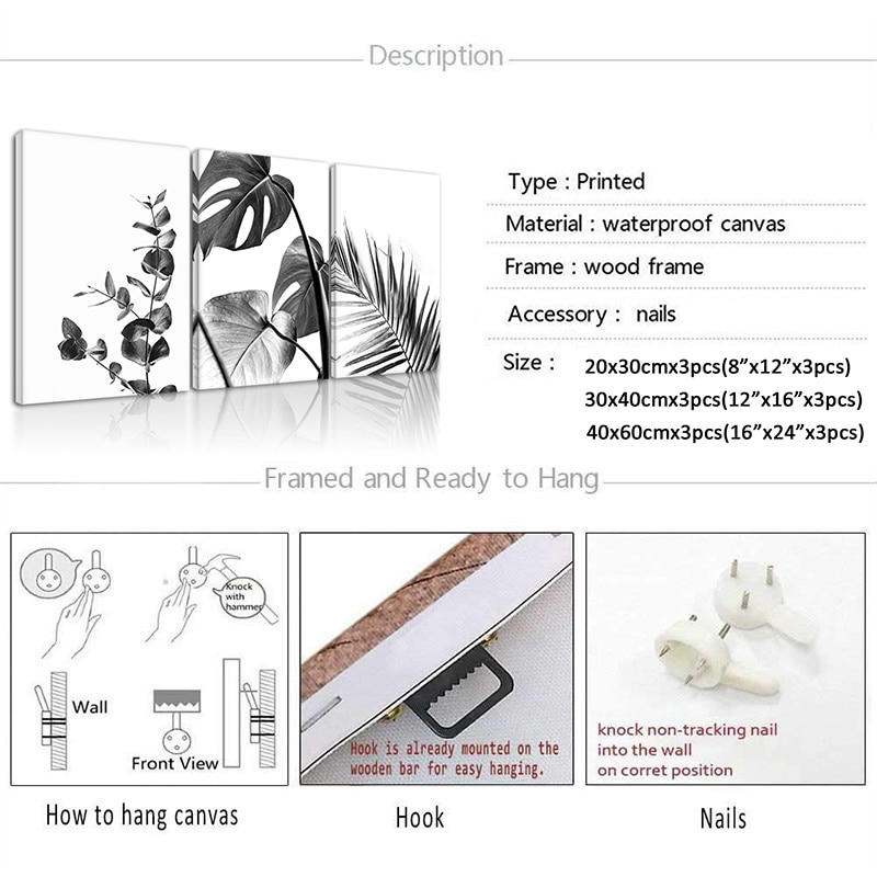 Size (Inch) | 8x12inx3pcs Framed, 12x16inx3pcs Framed, 16x24inx3pcs Framed |