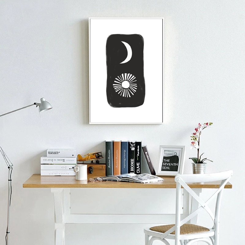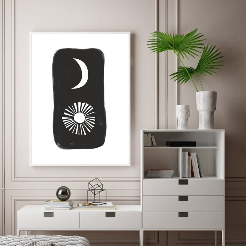 Black White SUN AND MOON Art Print Contemporary Minimalist Wall Art Canvas Painting Abstract Lines Poster Picture Home Decor