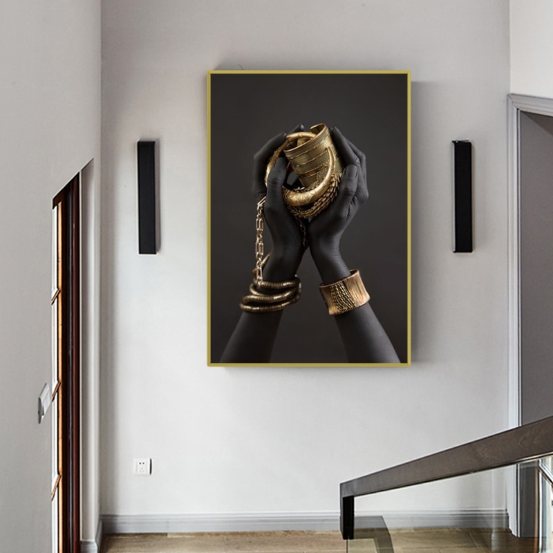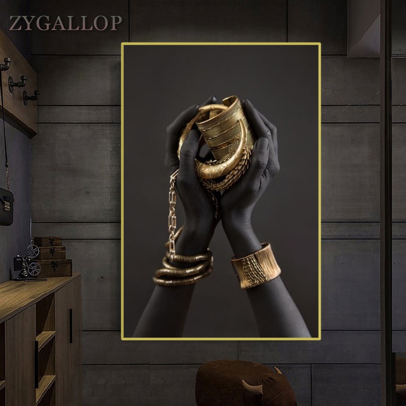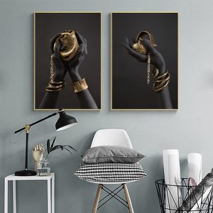 Be the first to review “Black Woman’s Hand Print Canvas Painting Gold Jewelry Posters And Prints Cuadros African Wall Art Pictures Home Decoration Mural”