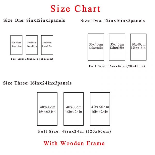 | Size (Inch) | Framed 8x12inx3pcs, Framed 12x16inx3pcs, Framed 16x24inx3pcs |