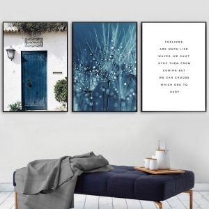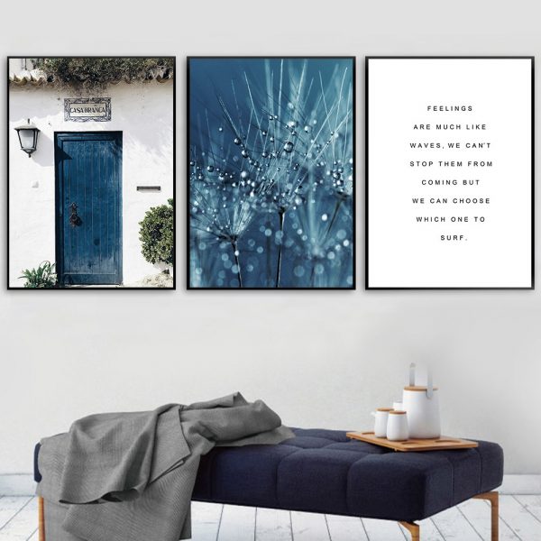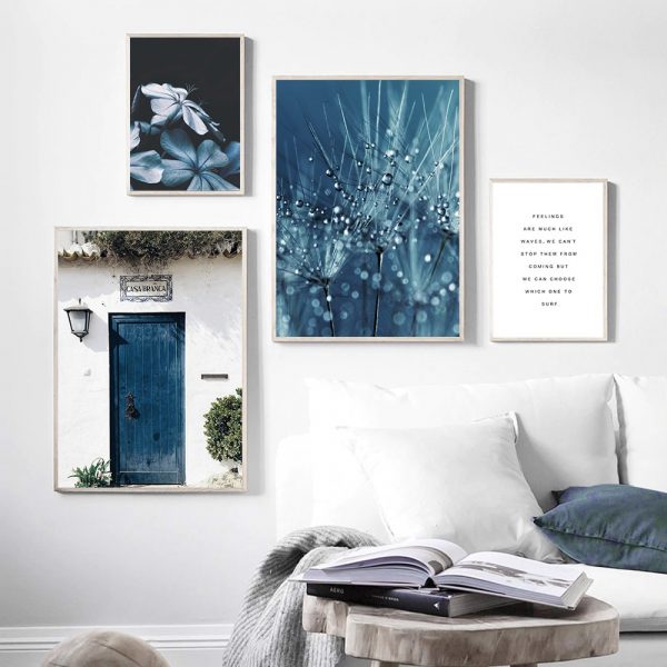 Blue Flower Plant Door Pictures Landscape Posters And Prints Nordic Modern Wall Art Canvas Painting For Living Room Home Decor