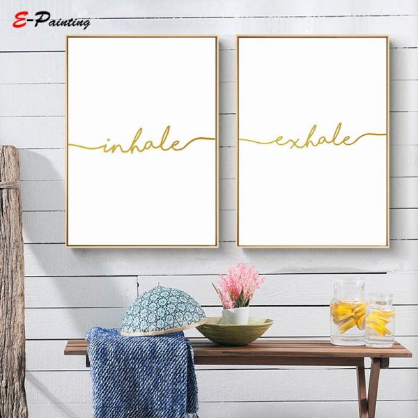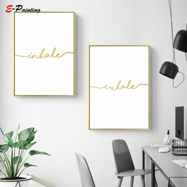 Canvas Art Inhale Exhale Golden Simple Quote Canvas Posters Prints Nordic Style Wall Art Painting Living Room Decor