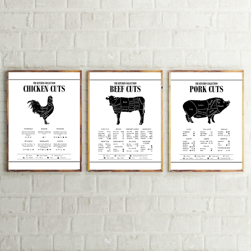 Canvas HD Prints Painting Kitchen Chart Beef Pork Chicken Cuts Wall Art Poster Modern Nordic Style Home Decor Modular Picture