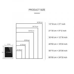 | Size | 13x18cm,21X30cm,30x40cm,40x50cm,50x70cm,60x80cm, or customized |