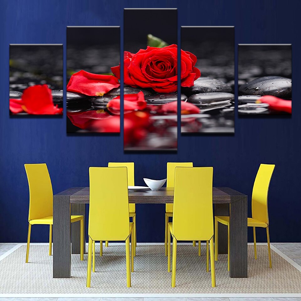 Be the first to review “Canvas Paintings Home Decor Living Room Wall Art 5 Pieces Red Rose Flowers Pictures Modular Prints Stone Petal Poster Framework”
