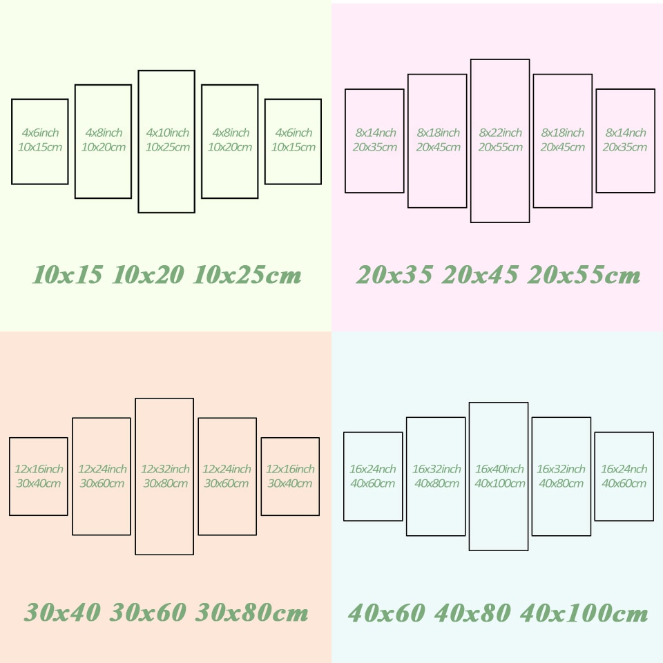 | Size (Inch) | 10×15 10×20 10x25cm, 20×35 20×45 20x55cm, 30×40 30×60 30x80cm, 40×60 40×80 40x100cm |