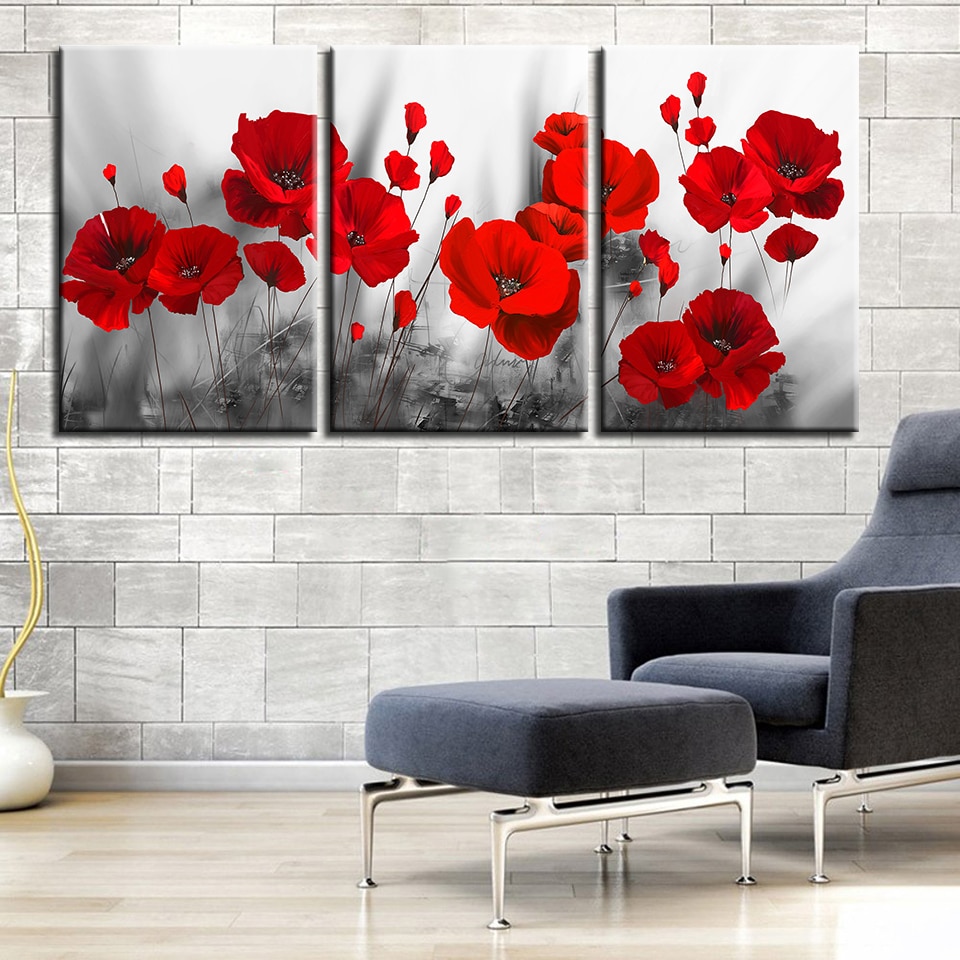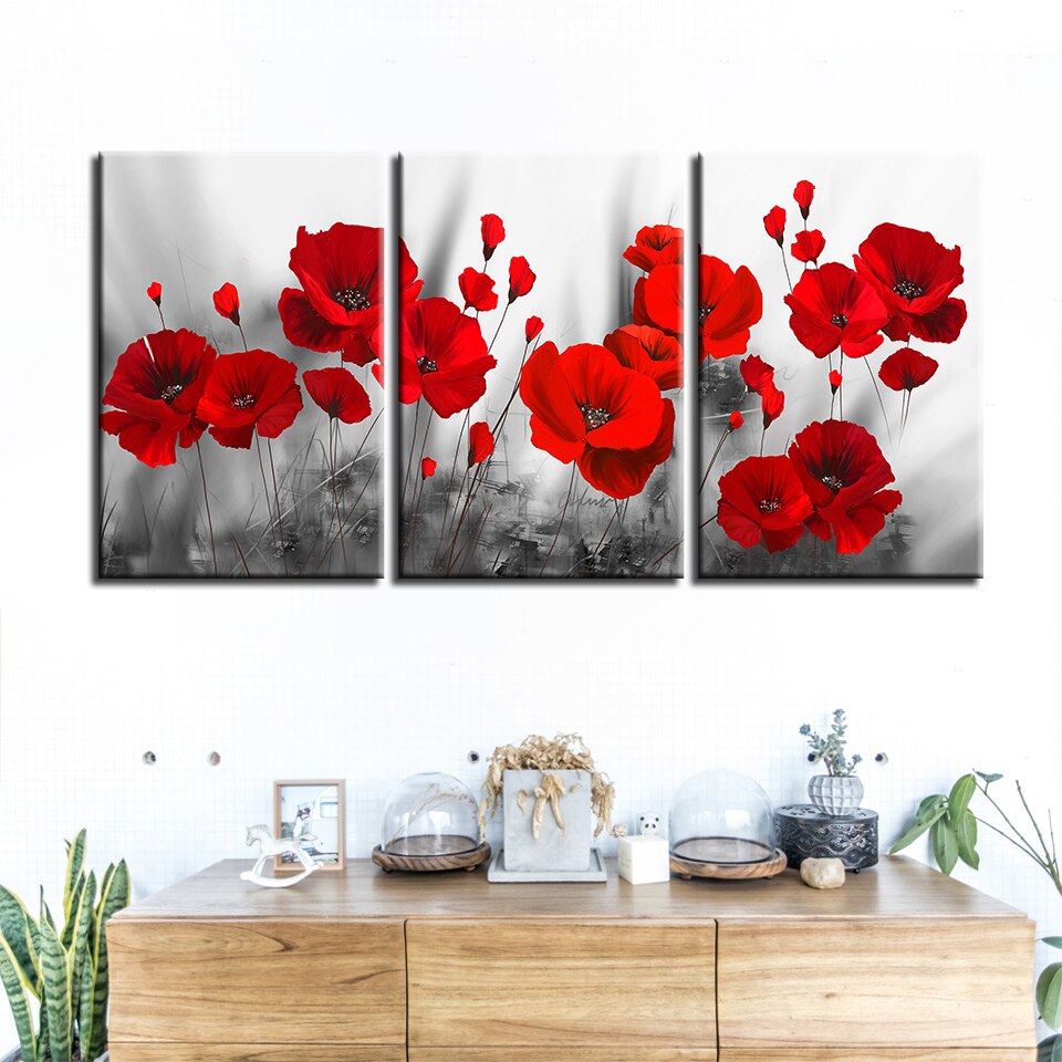 Canvas Paintings Home Decor Prints Romantic Poppies Poster 3 Pieces Red Flowers Pictures For Living Room Modular Wall Art Framed