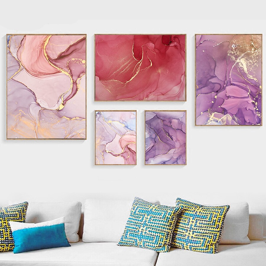 Be the first to review “Canvas Poster Abstract Watercolor Rendering Paintings Pink and Golden Pictures Wall Art Modern Living Room Kitchen Pop Art Decor”