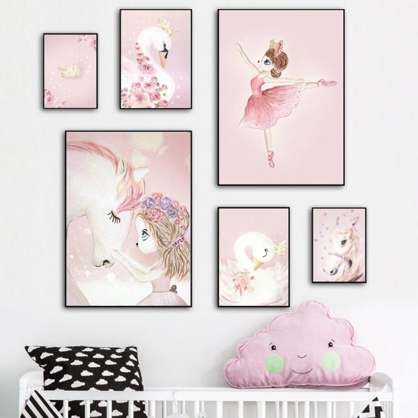 Be the first to review “Cartoon Girl Unicorn Swan Horse Flower Crown Wall Art Canvas Painting Nordic Posters And Prints Wall Pictures Kids Room Decor”