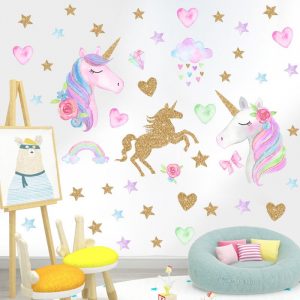 Be the first to review “Cartoon Unicorn Horse Star Heart Shape Pattern Wall Stickers For Kids Room Home Decoration Diy Animal Mural Art Pvc Decal”