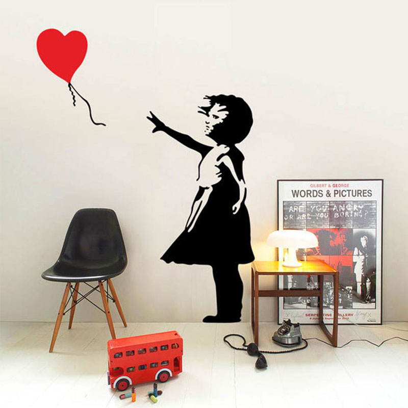 Childhood Girl With Balloon Vinyl Wall Stickers Home Decor Kids Room Bedroom Nursery Decoration Decals Graffiti Art Murals 3B26