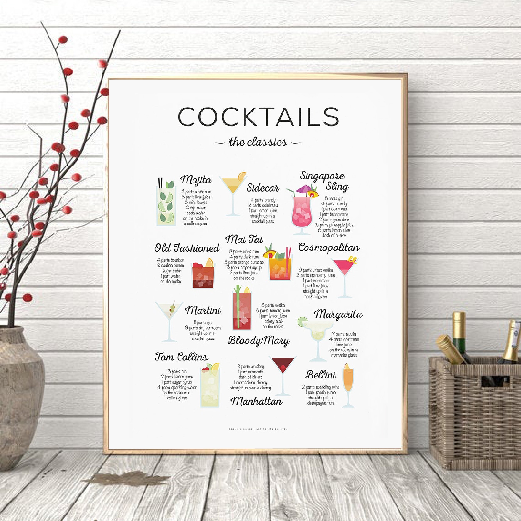 | Theme | Cocktails The Classics Recipe Wall Art Canvas Prints |