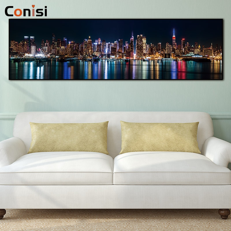 Conisi Modern Skyscrapers Wall Poster Home Decor City Night Canvas Painting City Landscape Prints for Livingroom Decoration