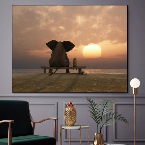 Be the first to review “Conisi Nordic Wall Art Painting Prints Cute Elephant and Dog See Sunset on Canvas Poster Home Decor for Livingroom Decoration”