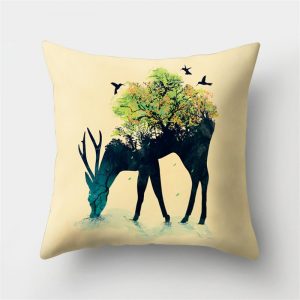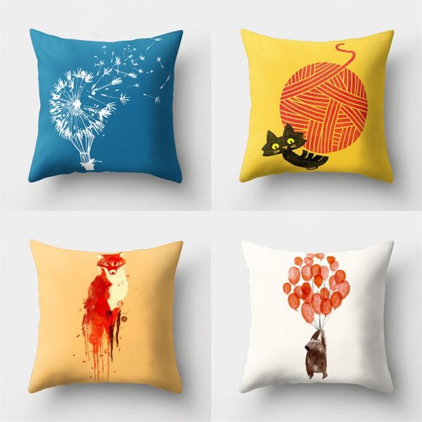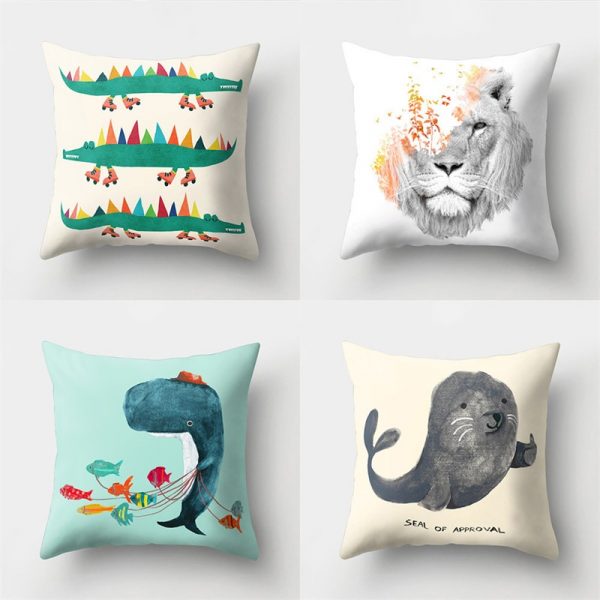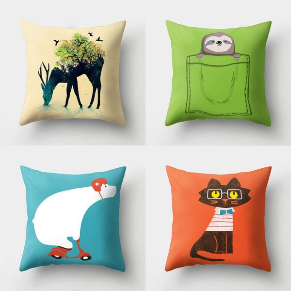 Cute Cartoon Animal Pillow Case Sofa Bedroom Car Waist Cushion Pillow Cover Black Cat Deer Plant Pillow Case Home Decorative