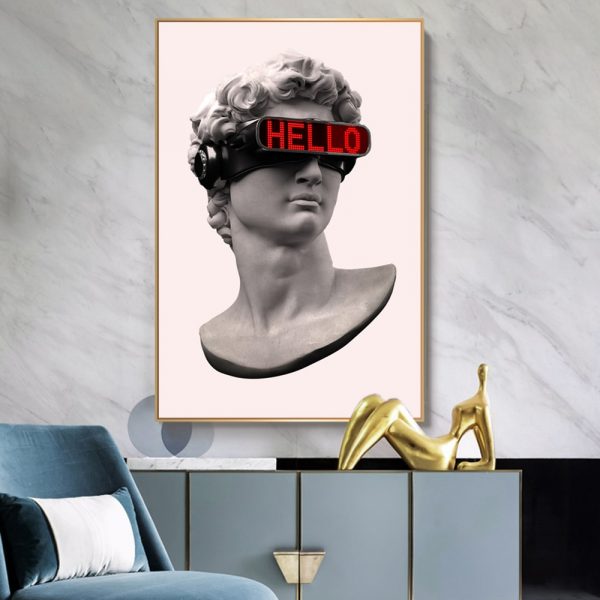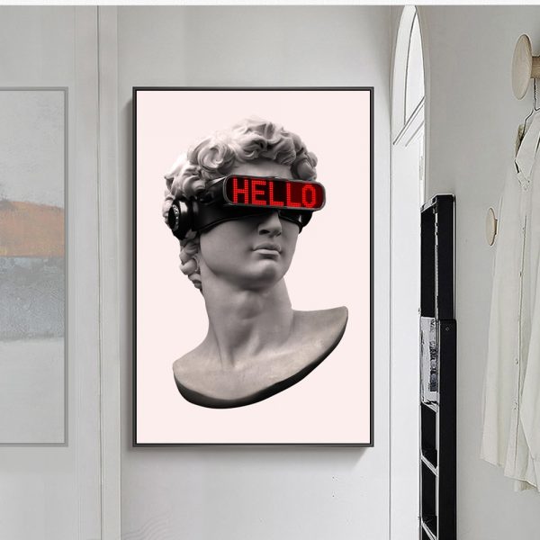 Be the first to review “David Sculpture with VR Glasses Wall Art Canvas Posters And Prints Abstract David Canvas Paintings on the Wall Decor Pictures”