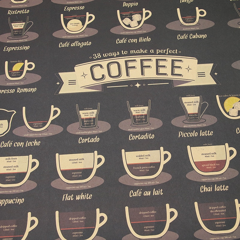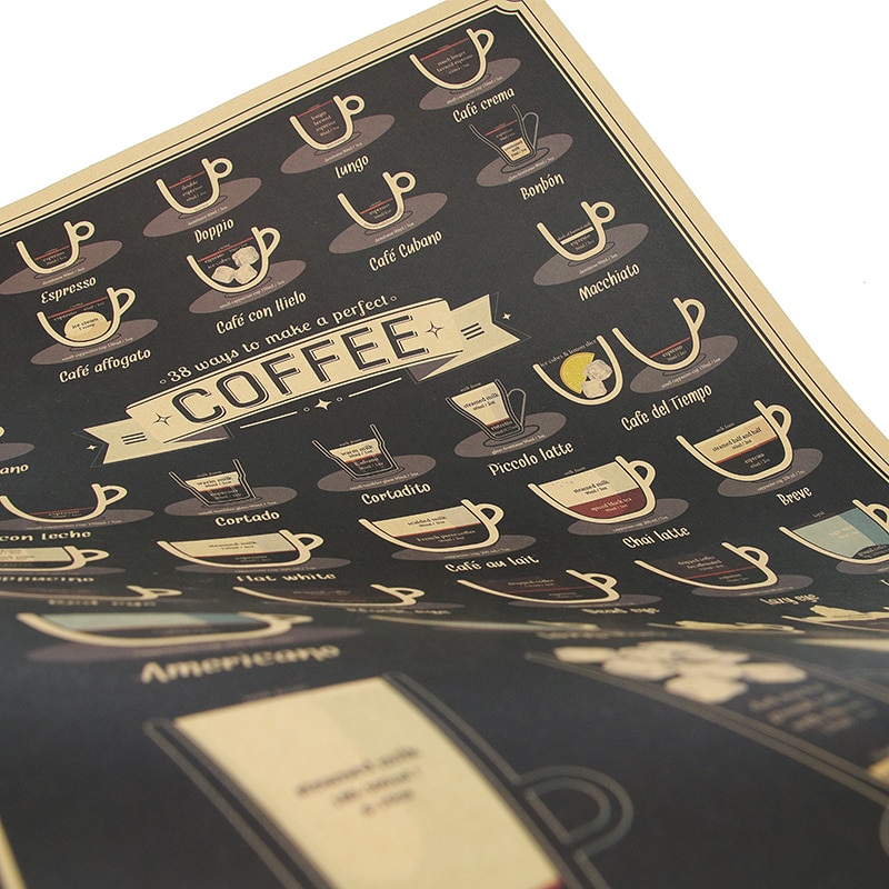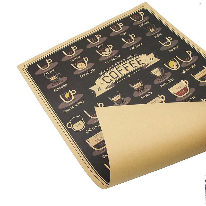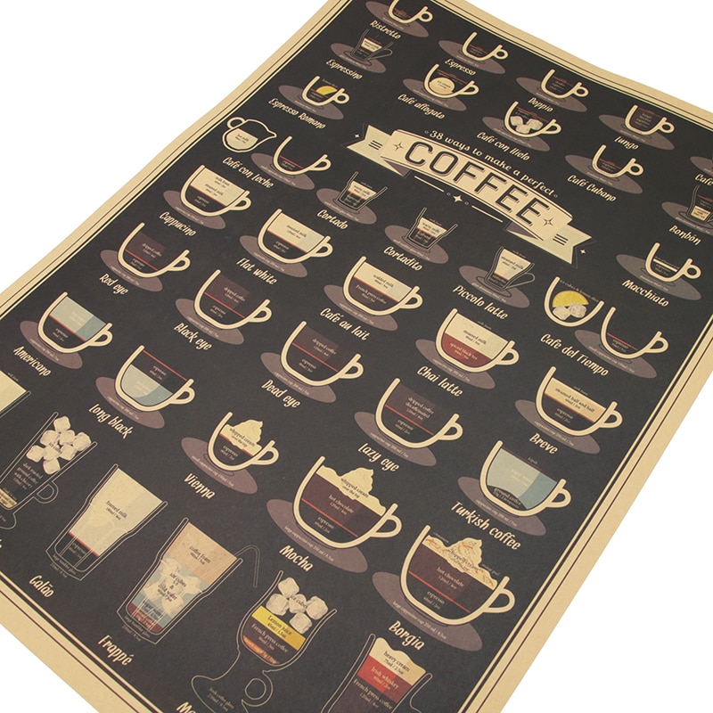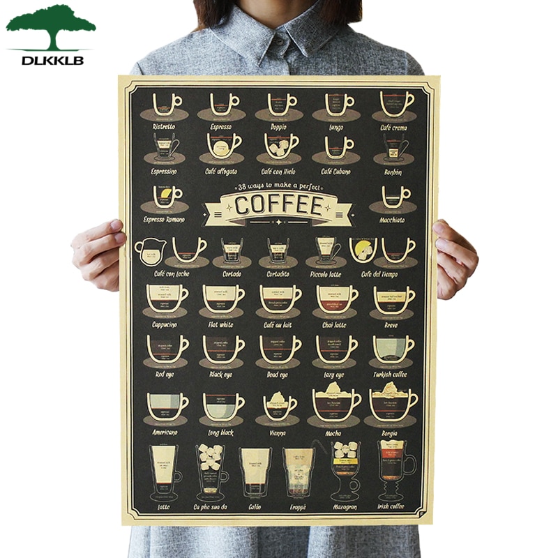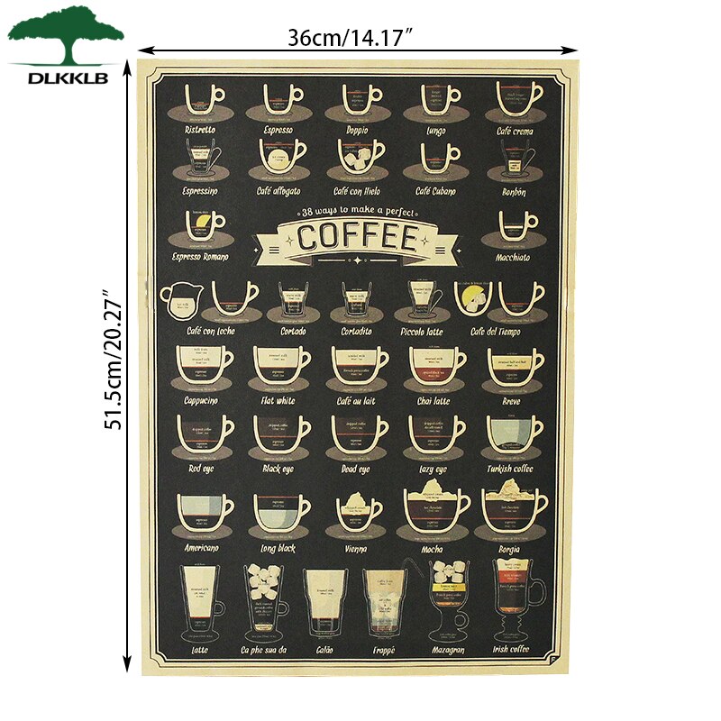 DLKKLB Vintage Poster Coffee Collection Bars Kitchen Drawing Poster Adornment Retro Wall Sticker 51.5x36cm Home Decoration