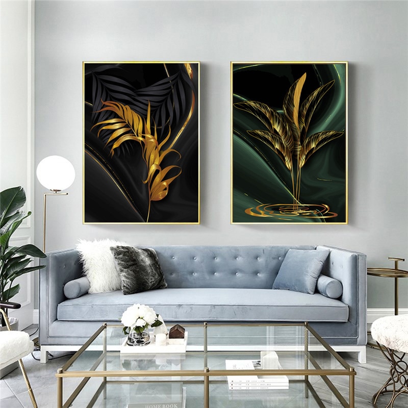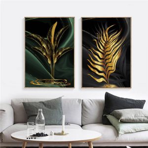 Dropship Nordic Modern Gold and Green Leaves Fashion Style Canvas Painting Art Print Poster Picture Wall Living Room Home Decor