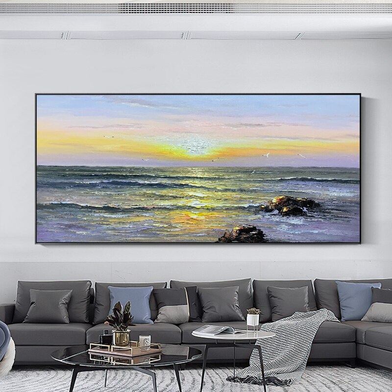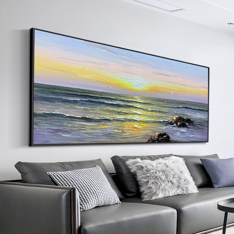 Hand-Painted Abstract Abstract Sea Sunrise Oil Painting Restaurant Wall Decorative Artwork