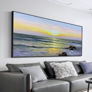 Be the first to review “Expert Painter Handwork High Quality Abstract Oil PaintingSunrise Over the sea on Canvas Oil Painting for Living Room”