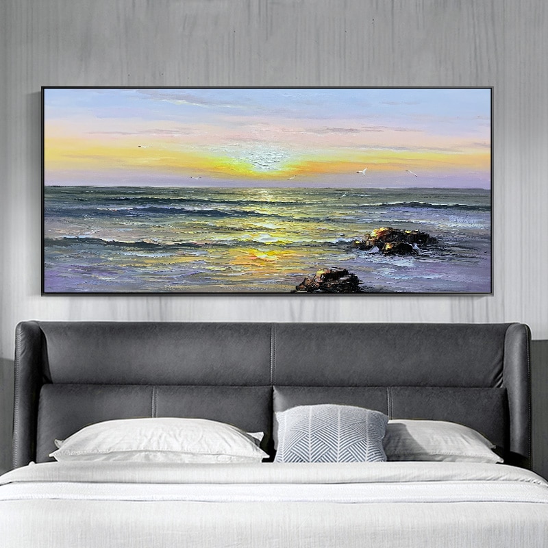Expert Painter Handwork High Quality Abstract Oil PaintingSunrise Over the sea on Canvas Oil Painting for Living Room