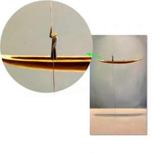 | Pianting Content | Fantasy Lonely Thinker and Golden Boat Painting |
