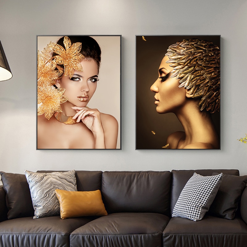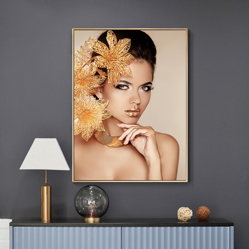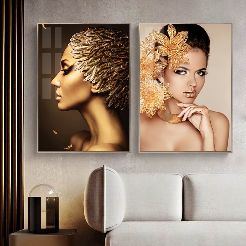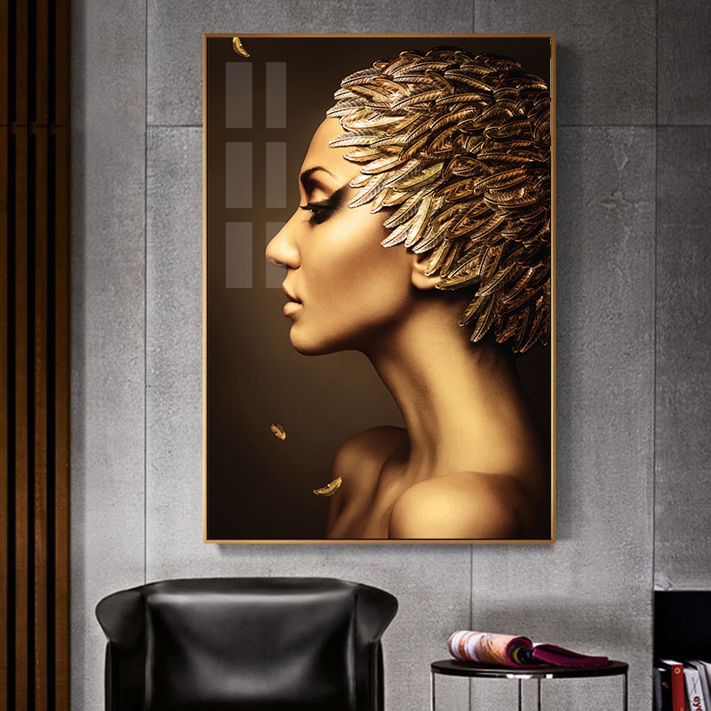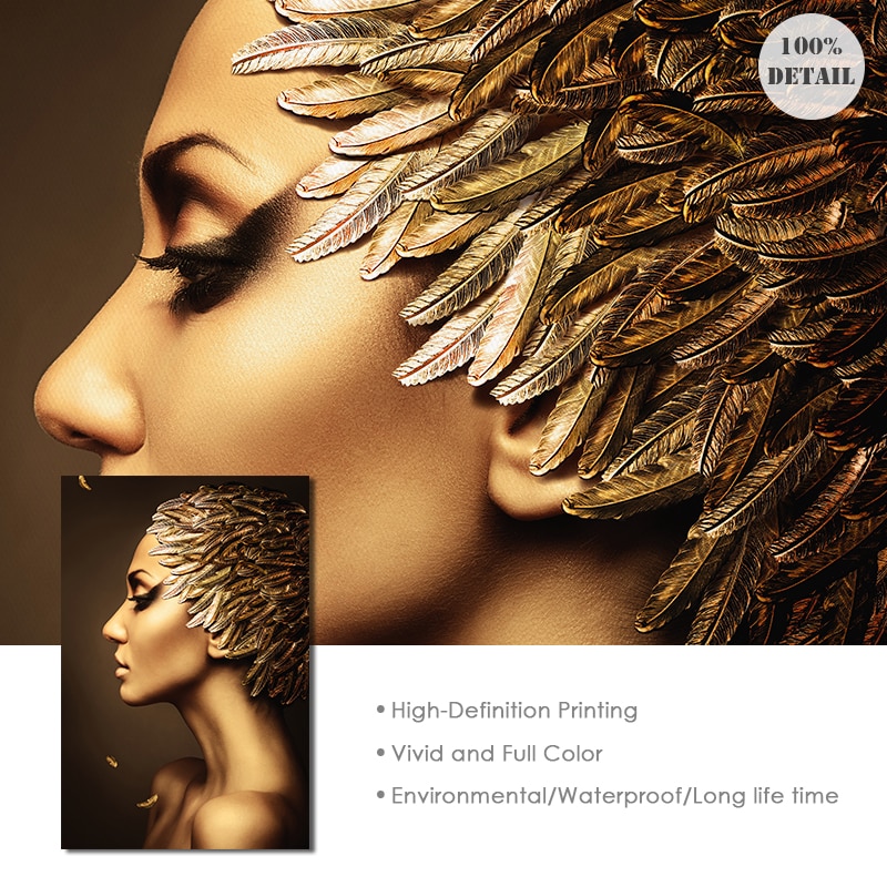 Be the first to review “Fashion Golden Luxury Flowers Woman Canvas Poster Modern Abstract Painting Wall Art Feather Print Pictures for Living Room Decor”