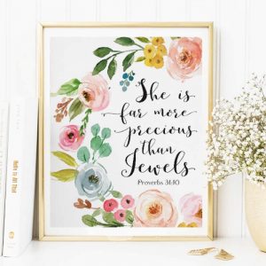 Be the first to review “Floral Posters Watercolor Art Canvas Prints , Christian Art God Quote Painting Pink Bible Verse Picture Baby Room Wall Art Decor”