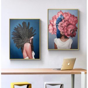 Be the first to review “Flowers Feathers Woman Abstract Canvas Painting Wall Art Print Poster Picture Decorative Painting Living Room Home Decoration”