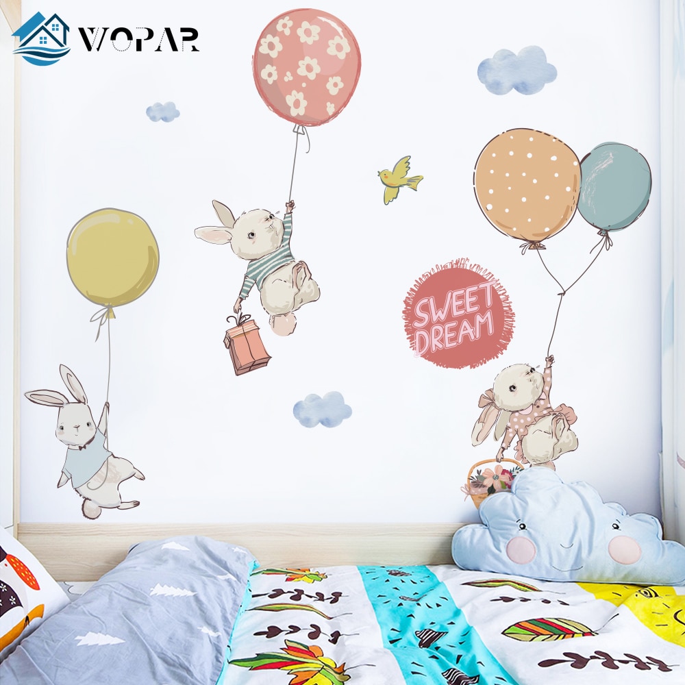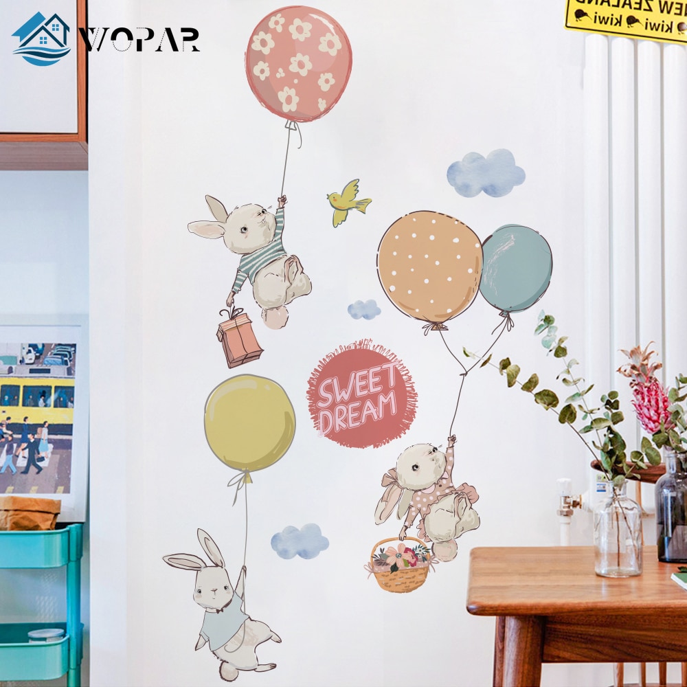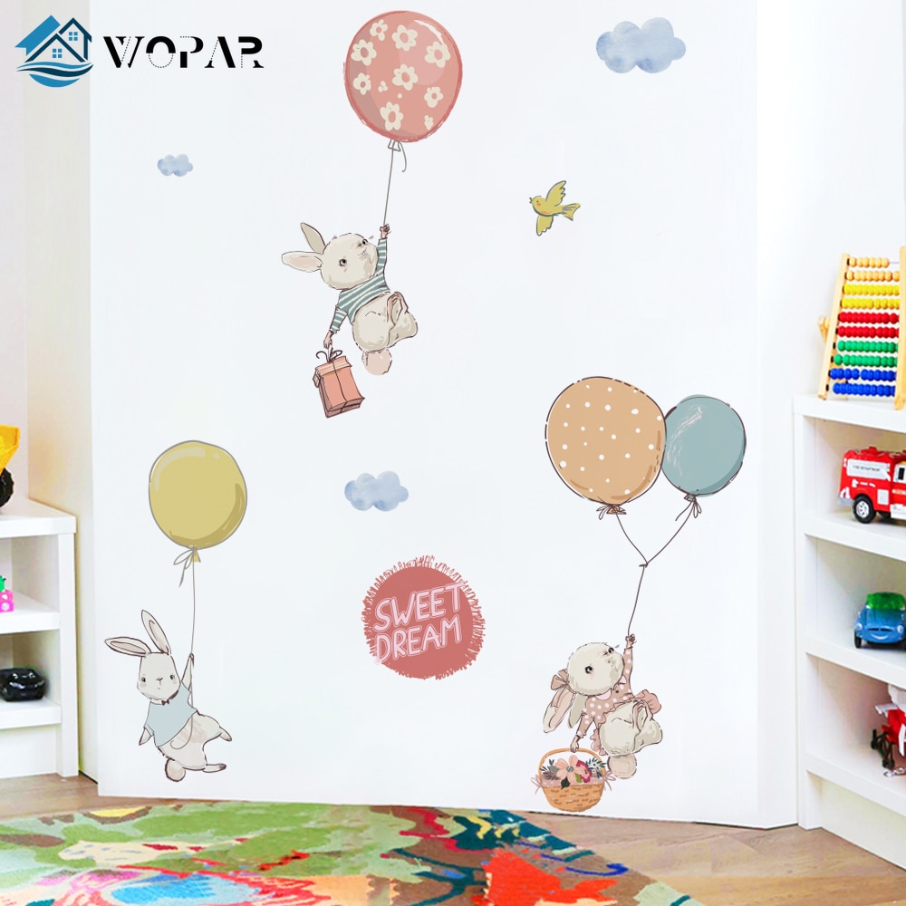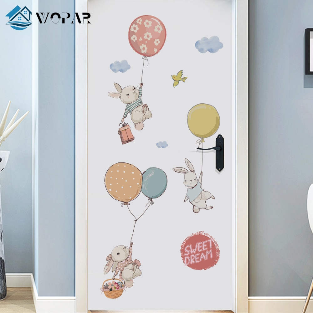 Flying Rabbit Cartoon Wall Stickers for Baby Rooms Door Decoration Stickers Child Room Decor Waterproof Vinyl Wall Decal Kawaii