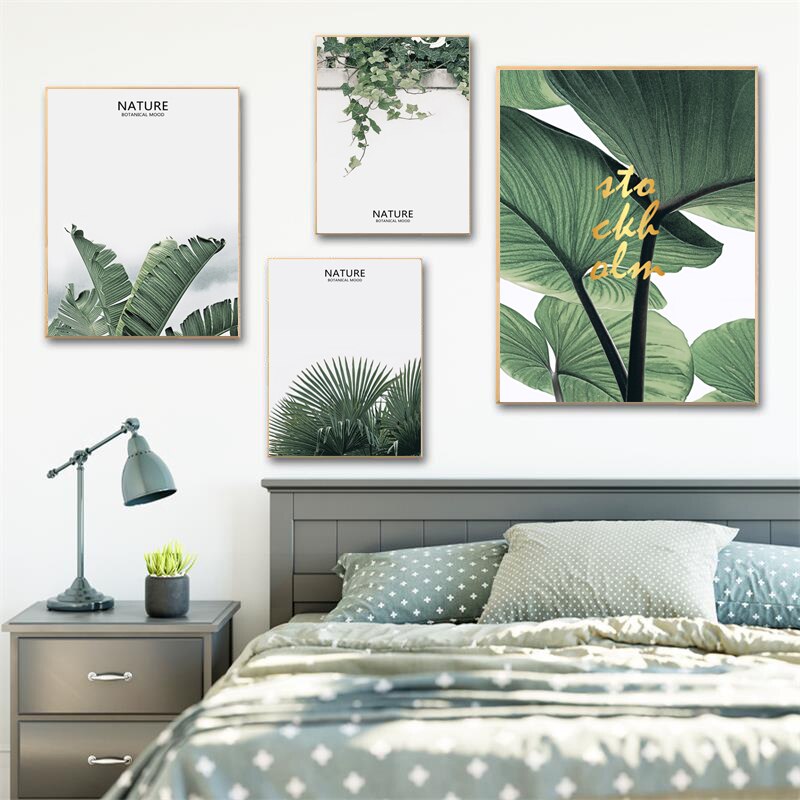 Fresh Green Plant Nordic Canvas Print Poster Multi Combination Green Leaves Paintings Pictures for Living Room Home Decor 5-07