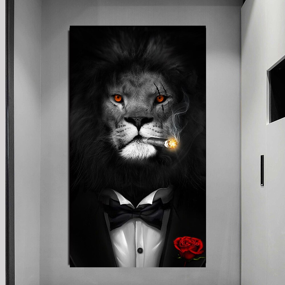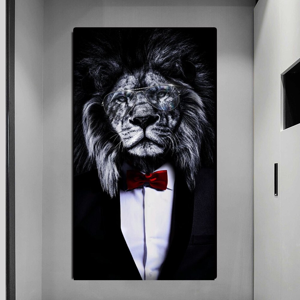 10 reviews for Funny Animal Black White Lion In Suit Canvas Art Posters And Prints Abstract Animals Canvas Paintings On the Wall Art Pictures