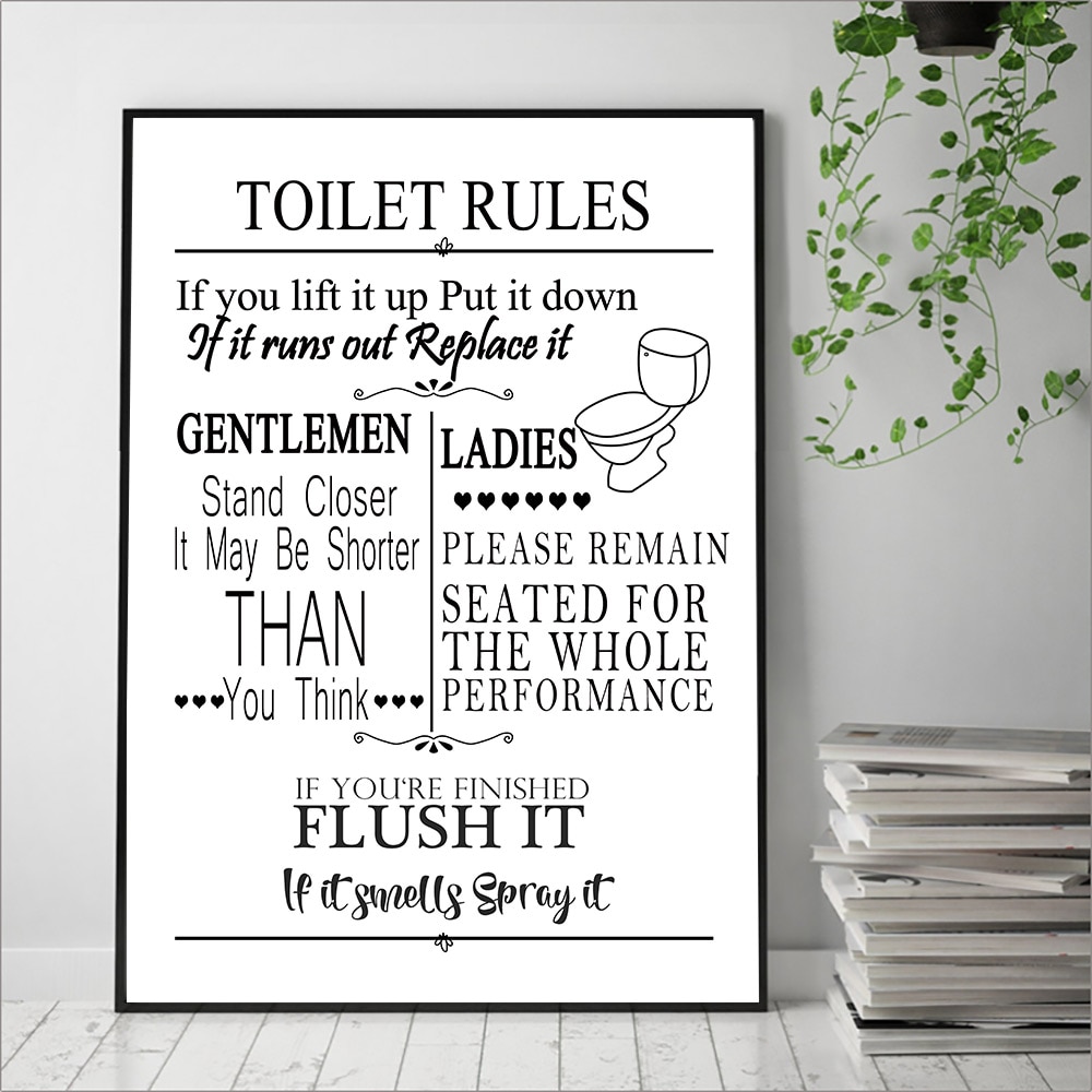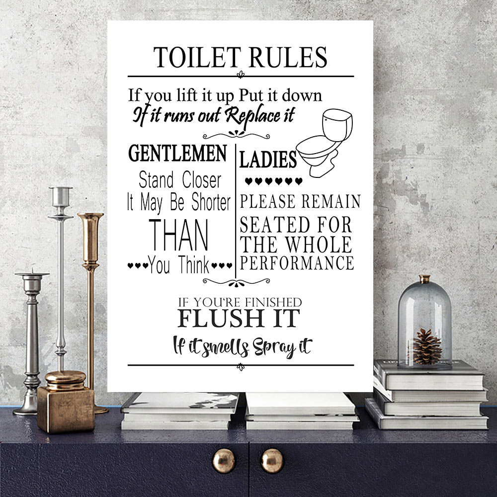 Funny Bathroom Rules Sign Canvas Painting Wall Art Toilet Rules Print Painting Nordic Poster Print Wall Pictures For Bathroom