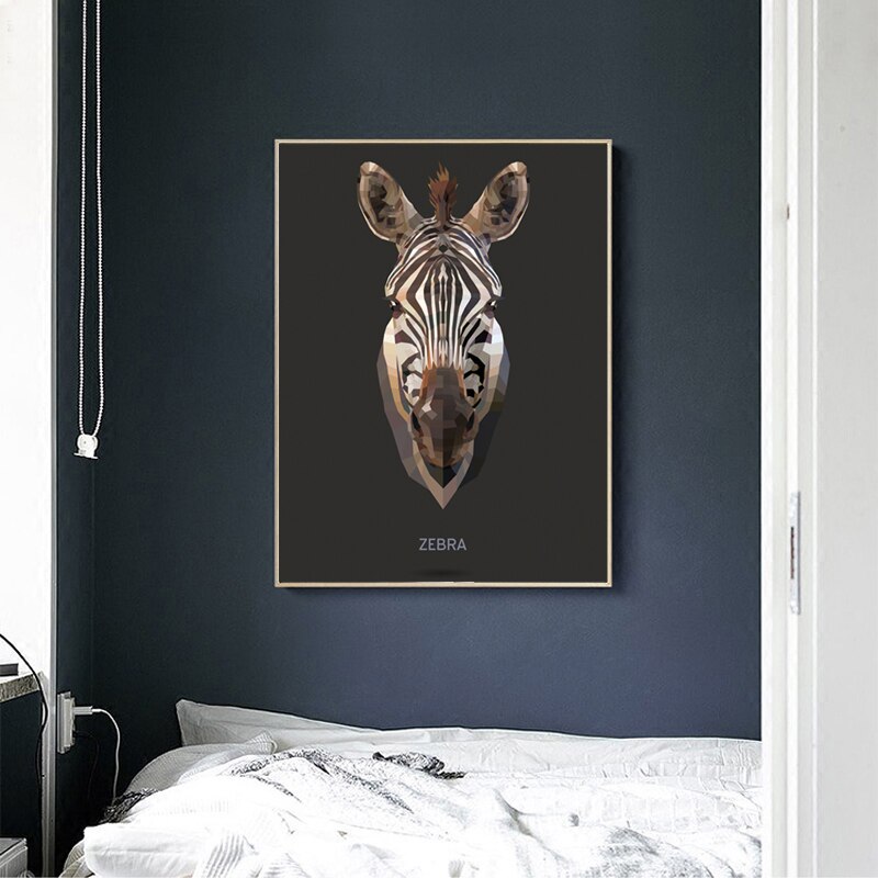 Geometric Tiger Posters and Prints Wall Art Polar Bear Zebra Baboon Buffalo Canvas Painting Wall Picture for Bedroom Decoration