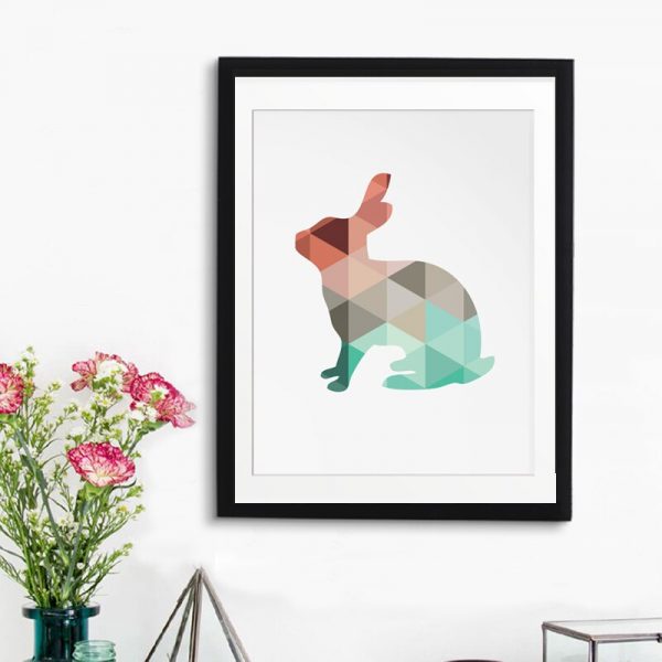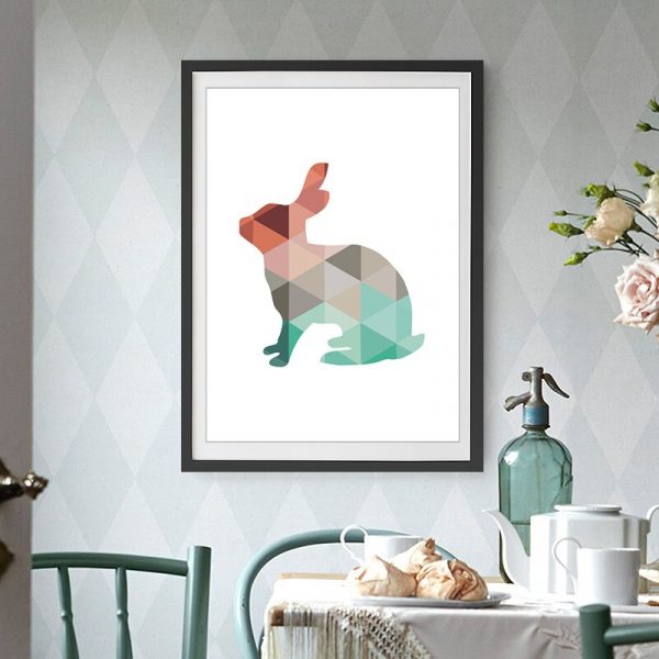Be the first to review “Geometric Triangles Animals Poster Rabbit Bunny Canvas Painting Fashion Modern Design Pictures for Kids Room Home Decor”