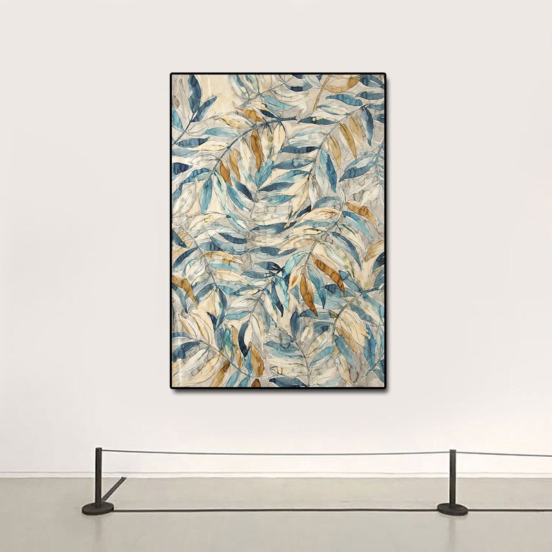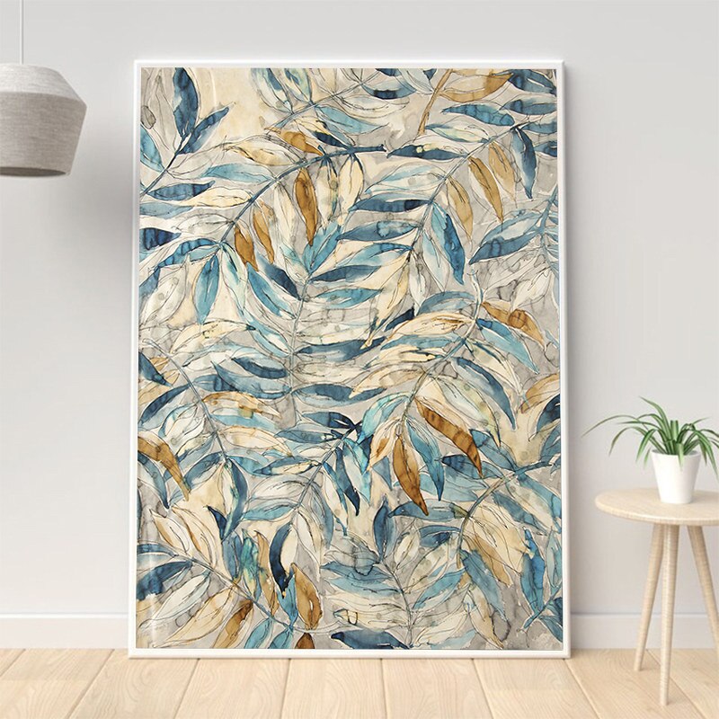 Gold and Blue Leaves Canvas Wall Art Modern Living room Bedroom Decor Canvas Prints Decoration Pictures Posters Prints no frame