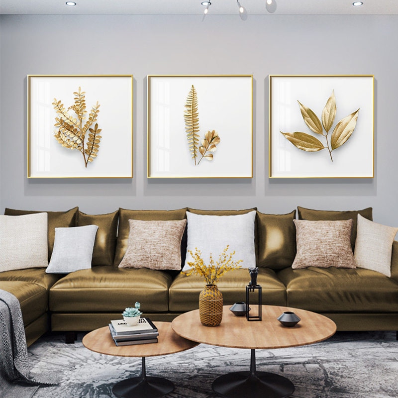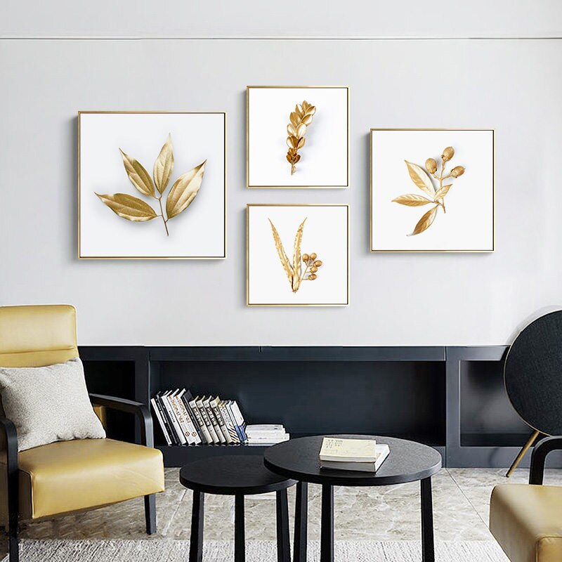 Gold Plant Luxury Picture Home Decor Wall Art Canvas Painting Abstract Fresh Leaves Posters and Prints Art Decor for Living Room