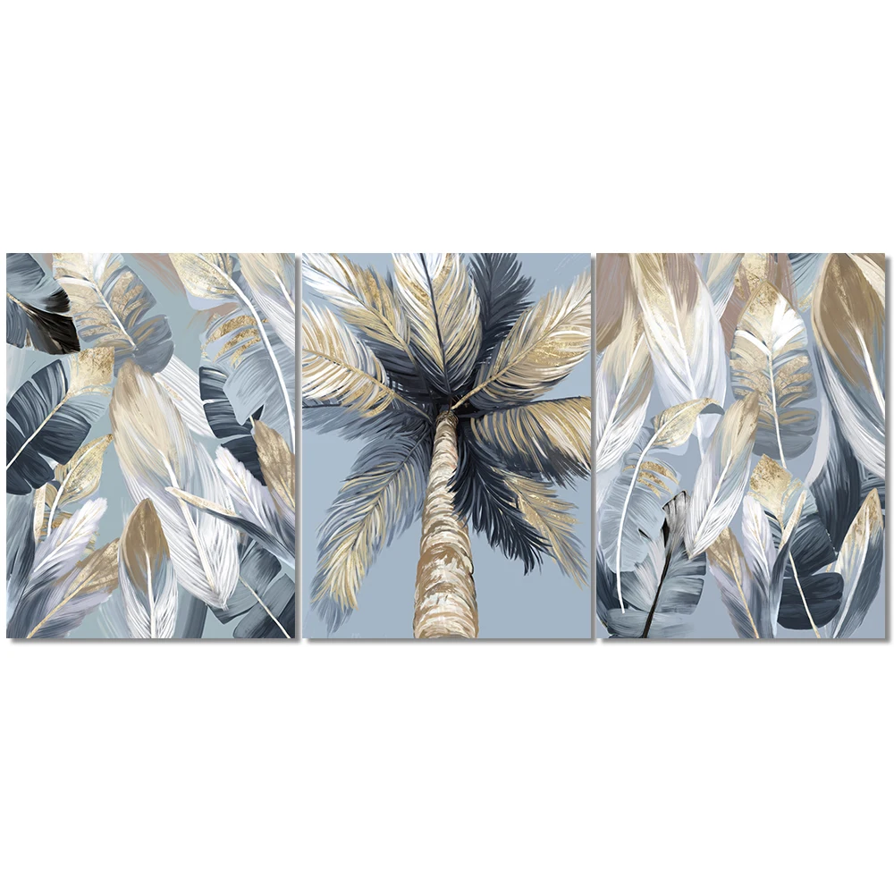 Gold Tropical Tree Palm Leaves Canvas Paintings On The Wall Art Canvas Prints Picture Posters for Hawaiian Luau Party Home Decor