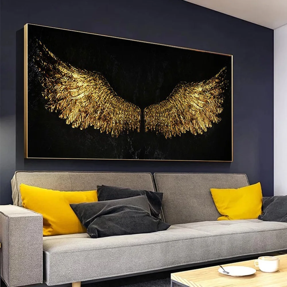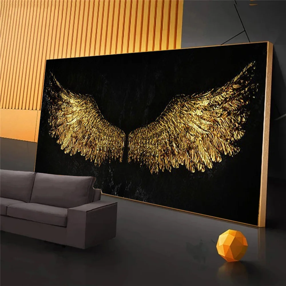 Golden Angel Wings Prints On Canvas Painting Wall Art Graffiti Black and White Poster Pictures For Modern Home Decor Custom Gift
