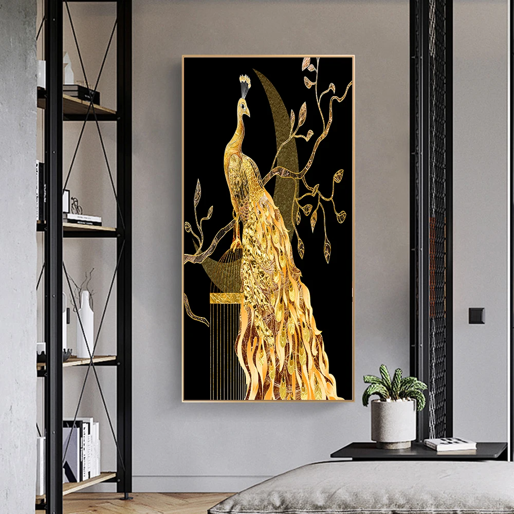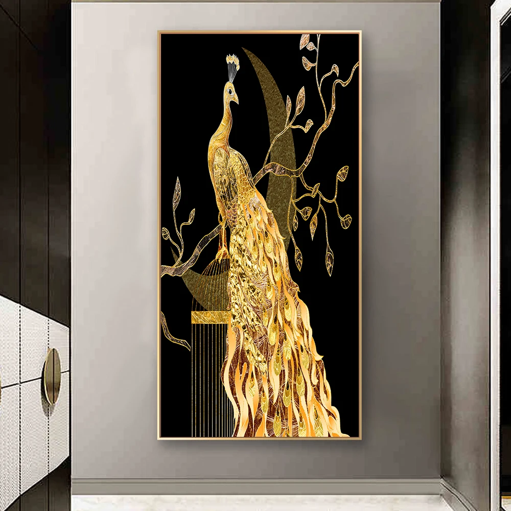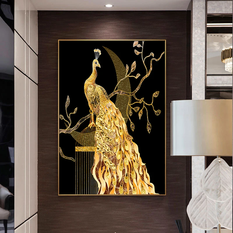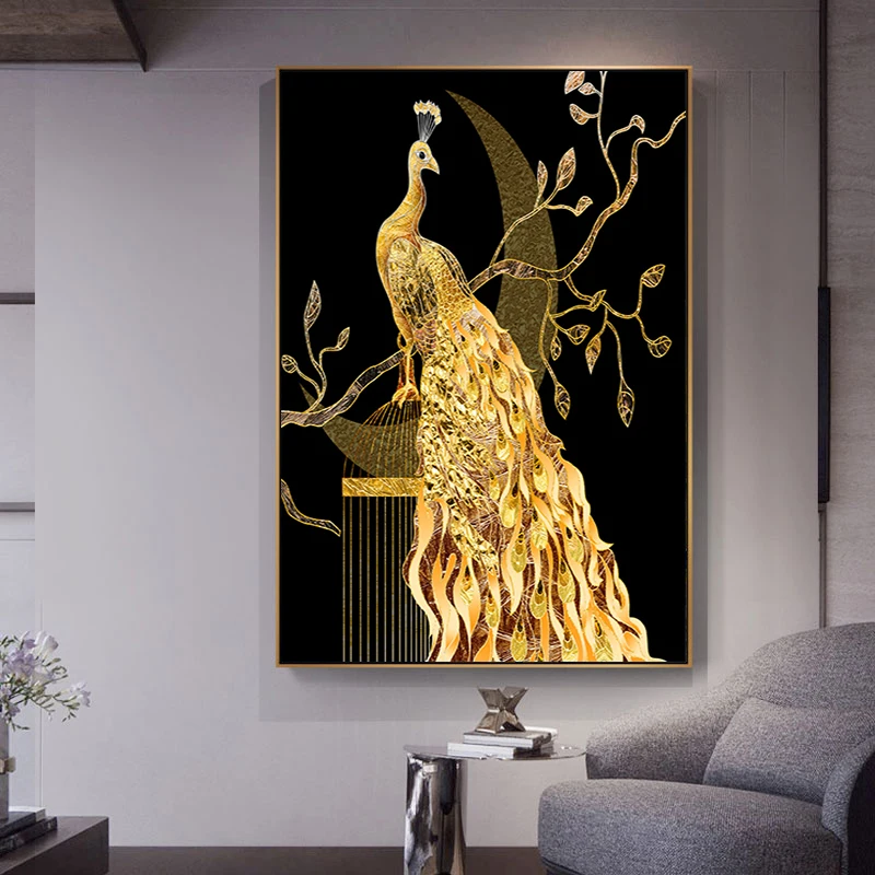 Be the first to review “Golden Peacock Butterfly Flower Feather Bird Canvas Painting Animal Wall Art Pictures for Living Room Home Decor (No Frame)”