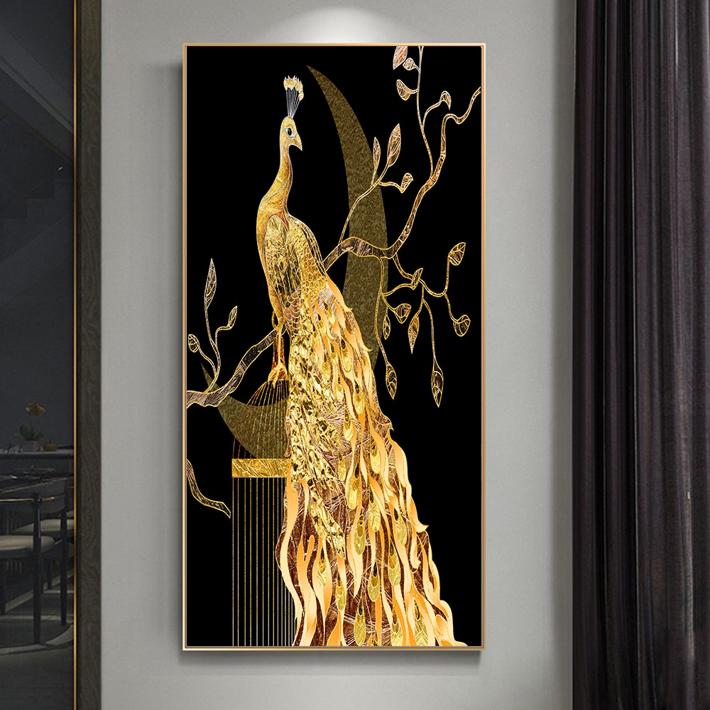 Be the first to review “Golden Peacock Butterfly Flower Feather Bird Canvas Painting Animal Wall Art Pictures for Living Room Home Decor (No Frame)”
