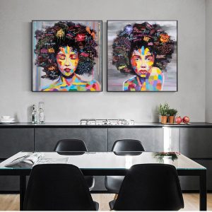 Be the first to review “Graffiti African Girl with Letters Wall Art Canvas Modern Pop Wall Abstract Art Paintings Black Woman Picture Home Decor”