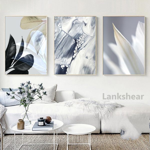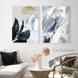 Be the first to review “Grey Abstract Painting Scandinavian Marble Poster Black Leaf Print Botanical Canvas Print Wall Art Picture Living Room Decor”
